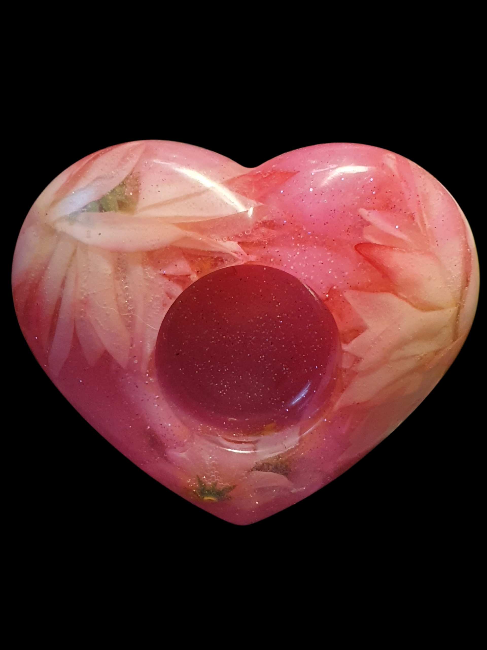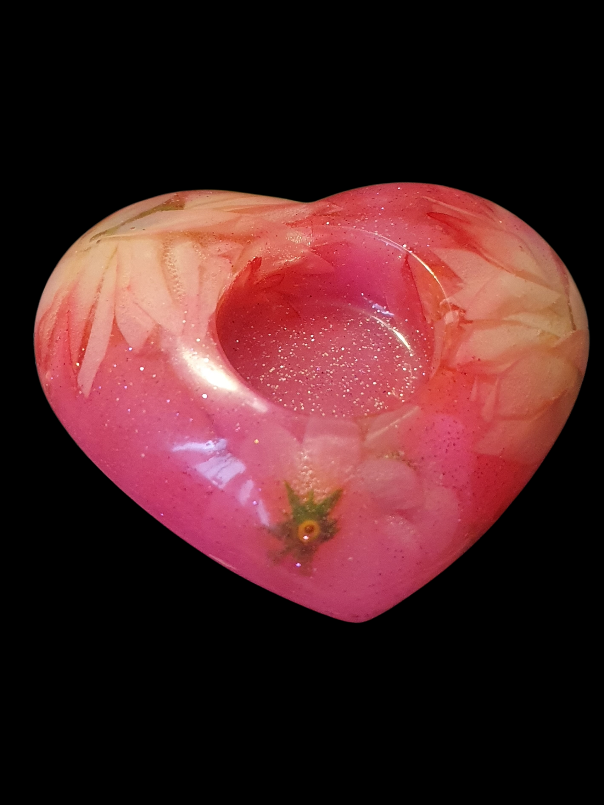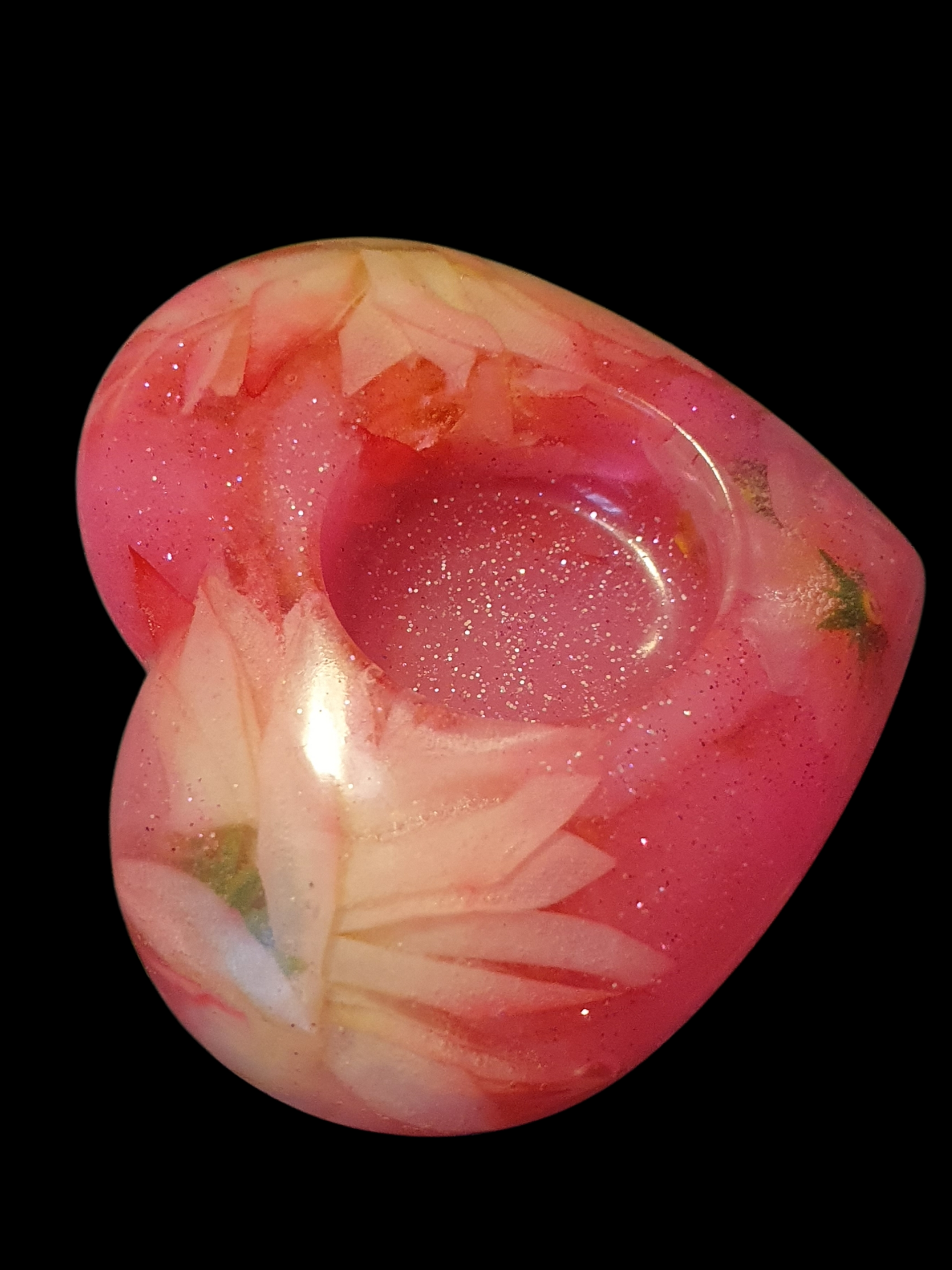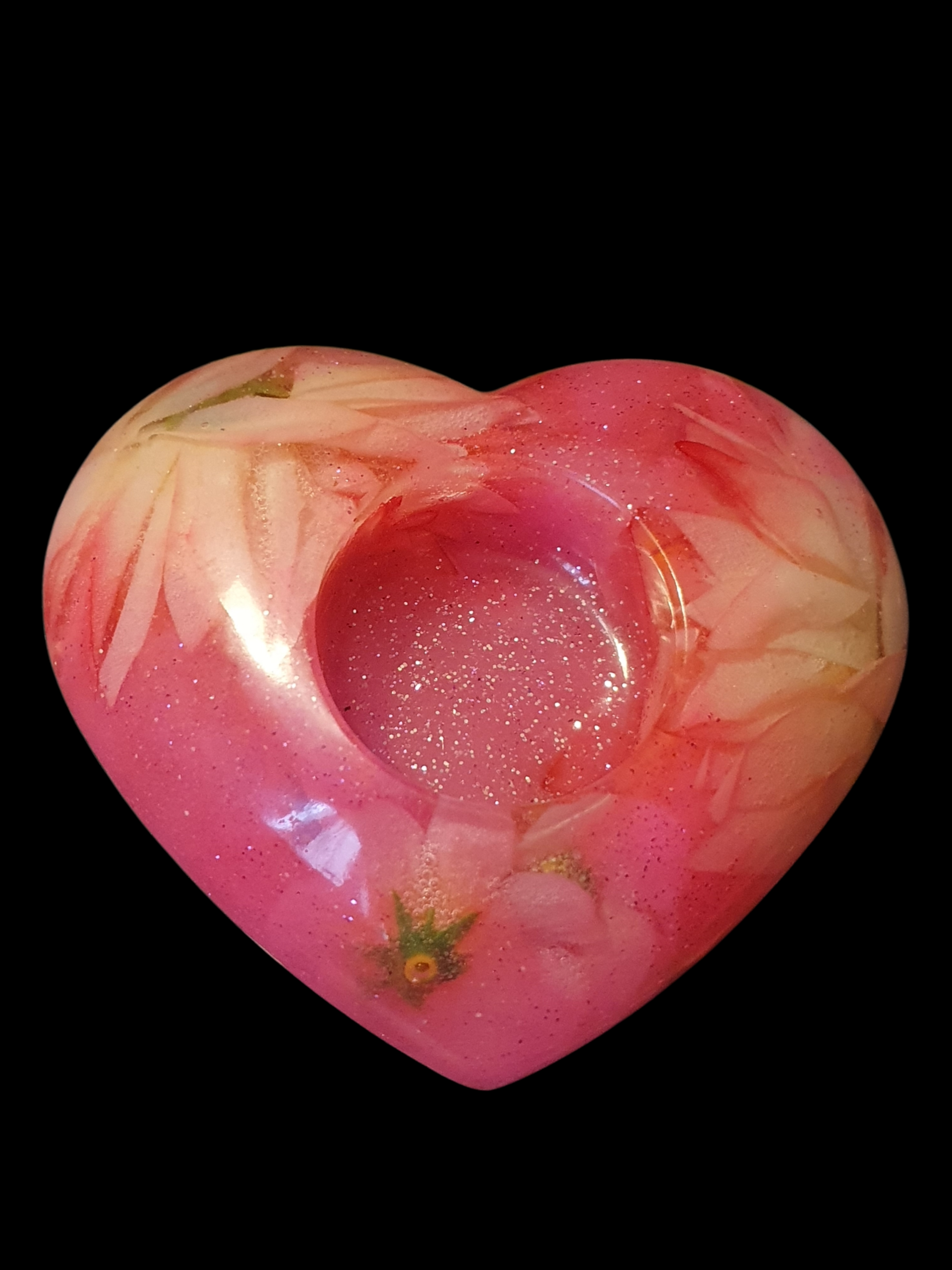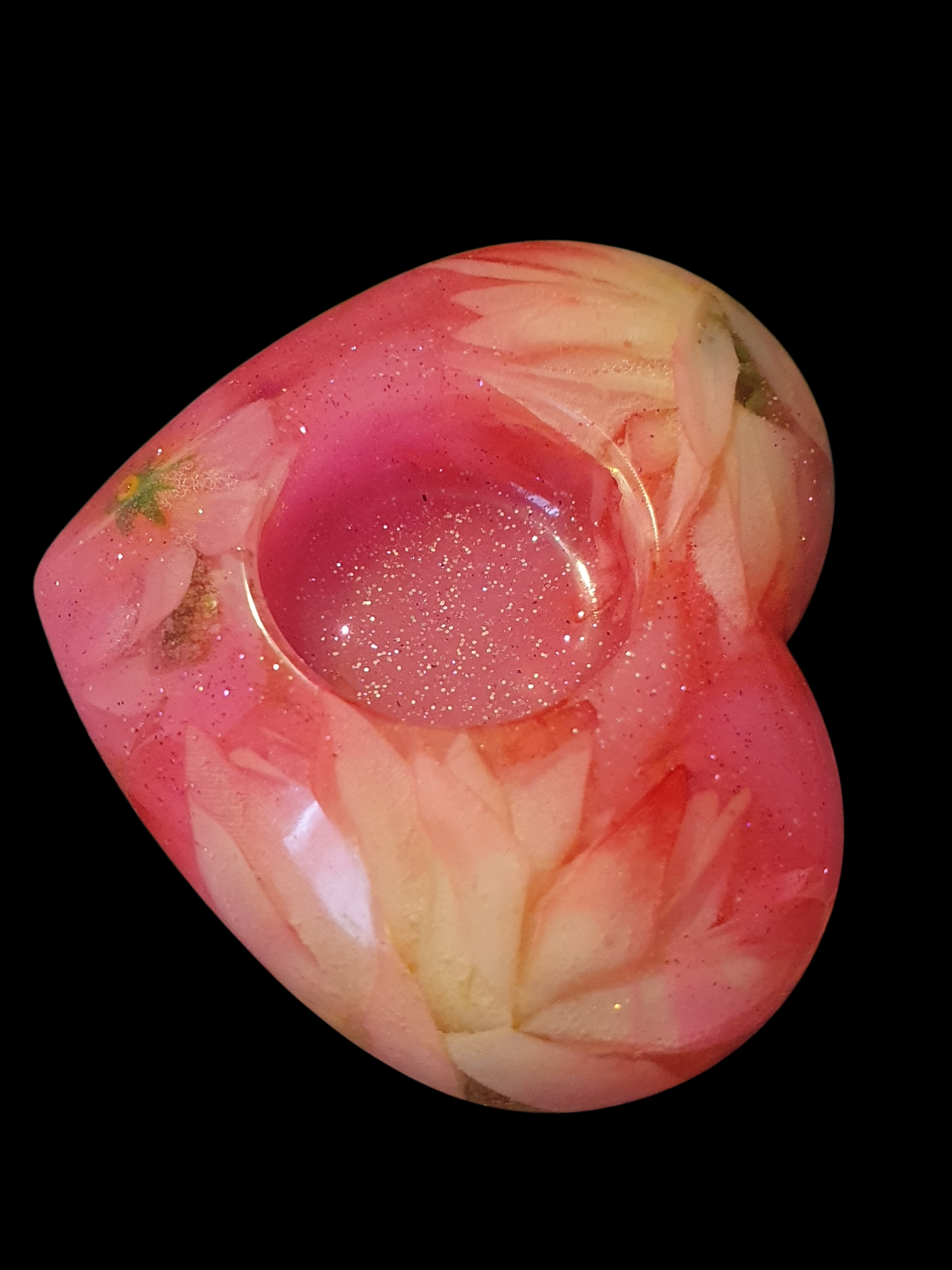 Un cœur rose traversé de pétales translucides, comme une émotion qui s'ouvre sans bruit.