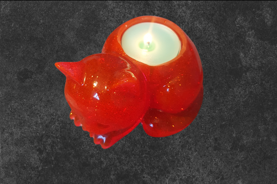 Lorsque la flamme s'allume, le chat impulse un souffle vivant, gardien lumineux de l'énergie Créatrice.