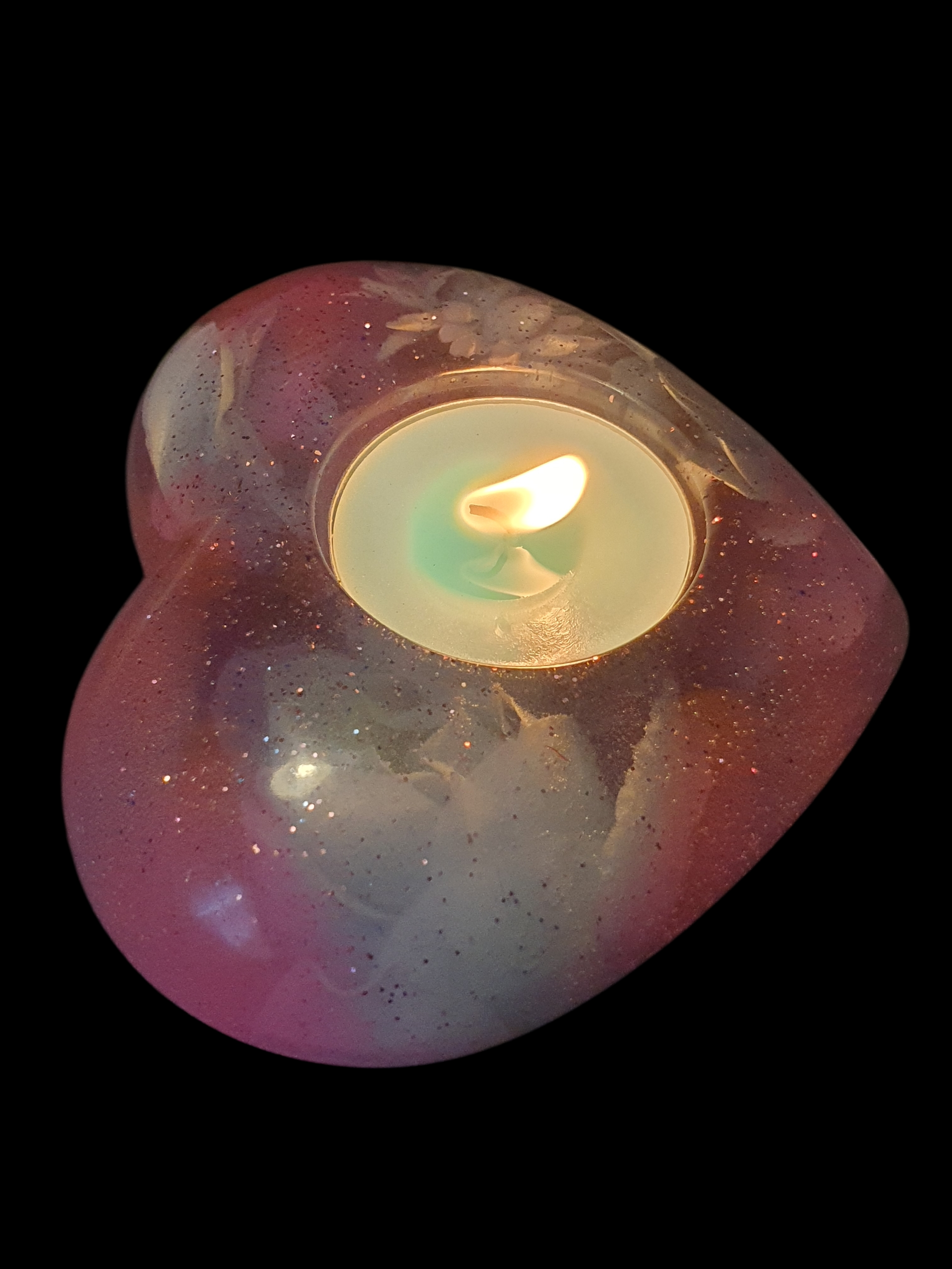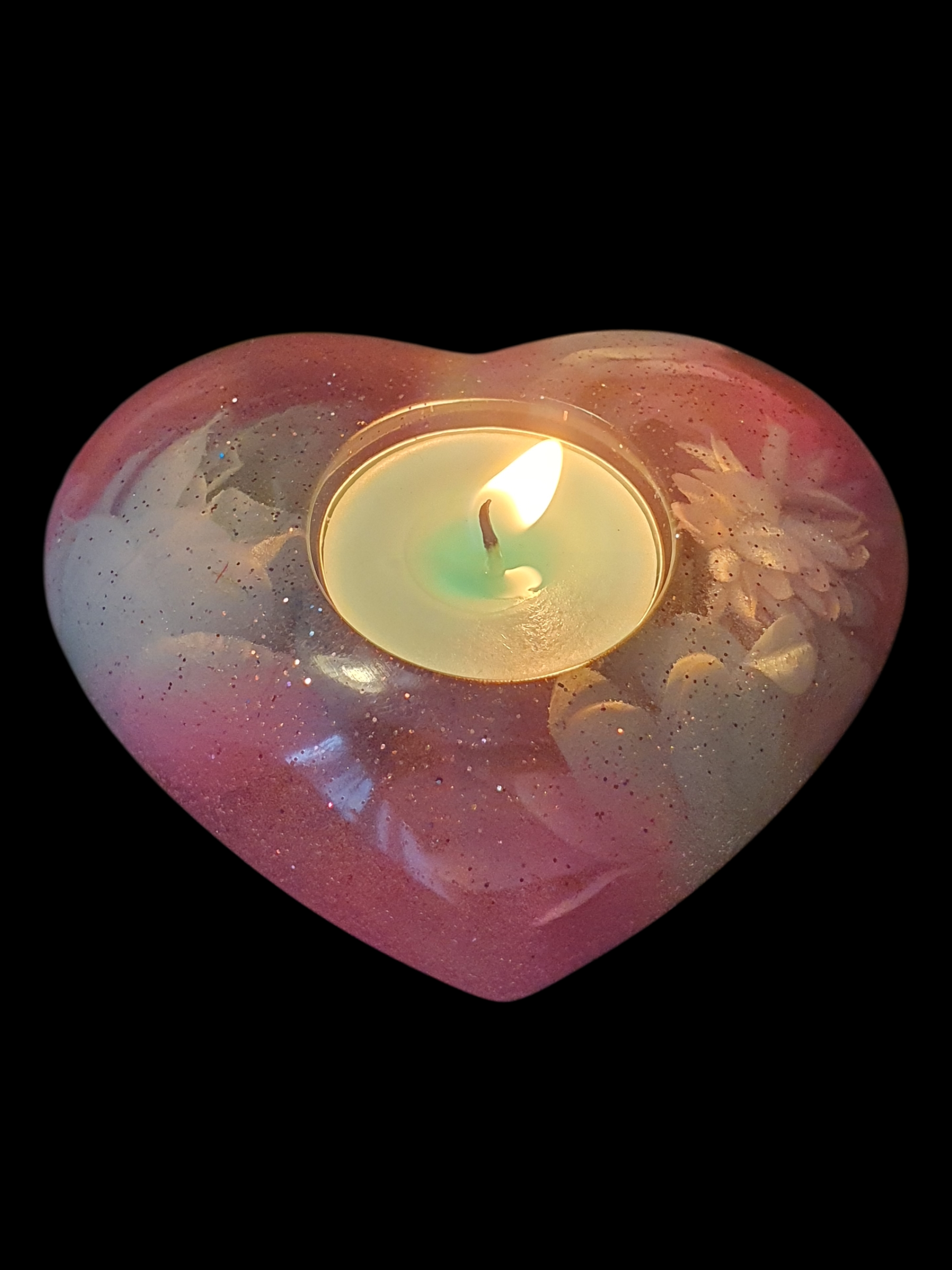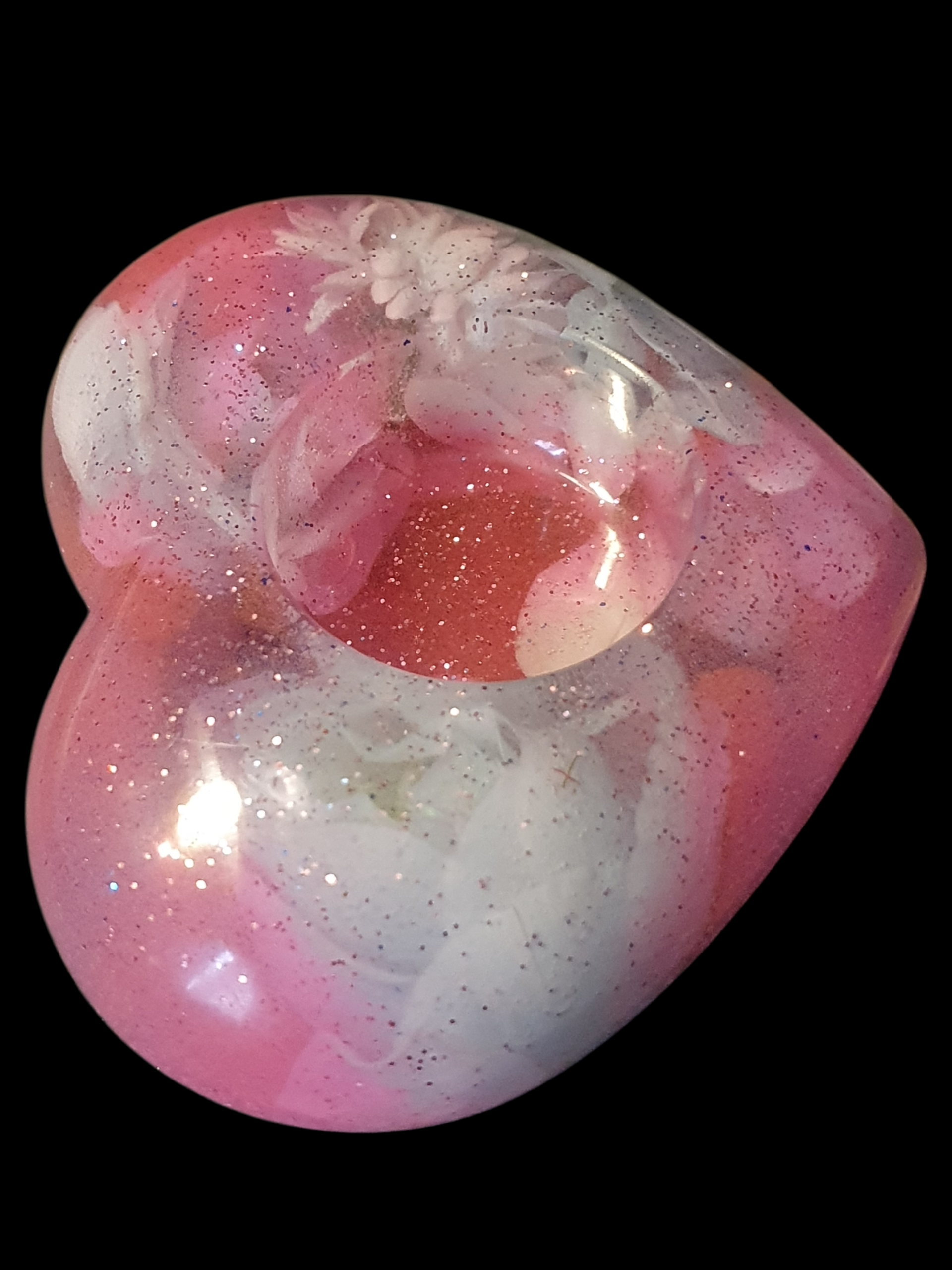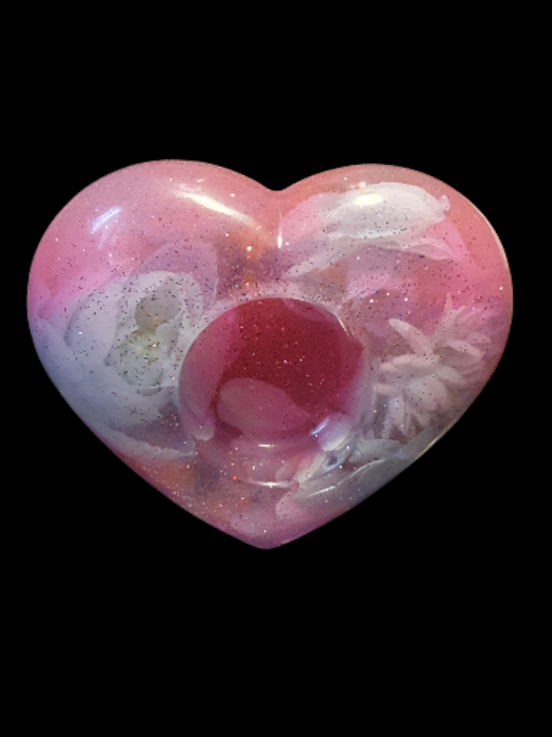 Des pétales roses et nacrés s'entrelacent dans la matière, comme un cœur qui s'ouvre lentement à la lumière.
