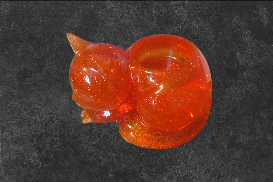 Lorsque la flamme s'allume, le chat diffuse une énergie tendre, gardien paisible d'un élan intérieur serein.