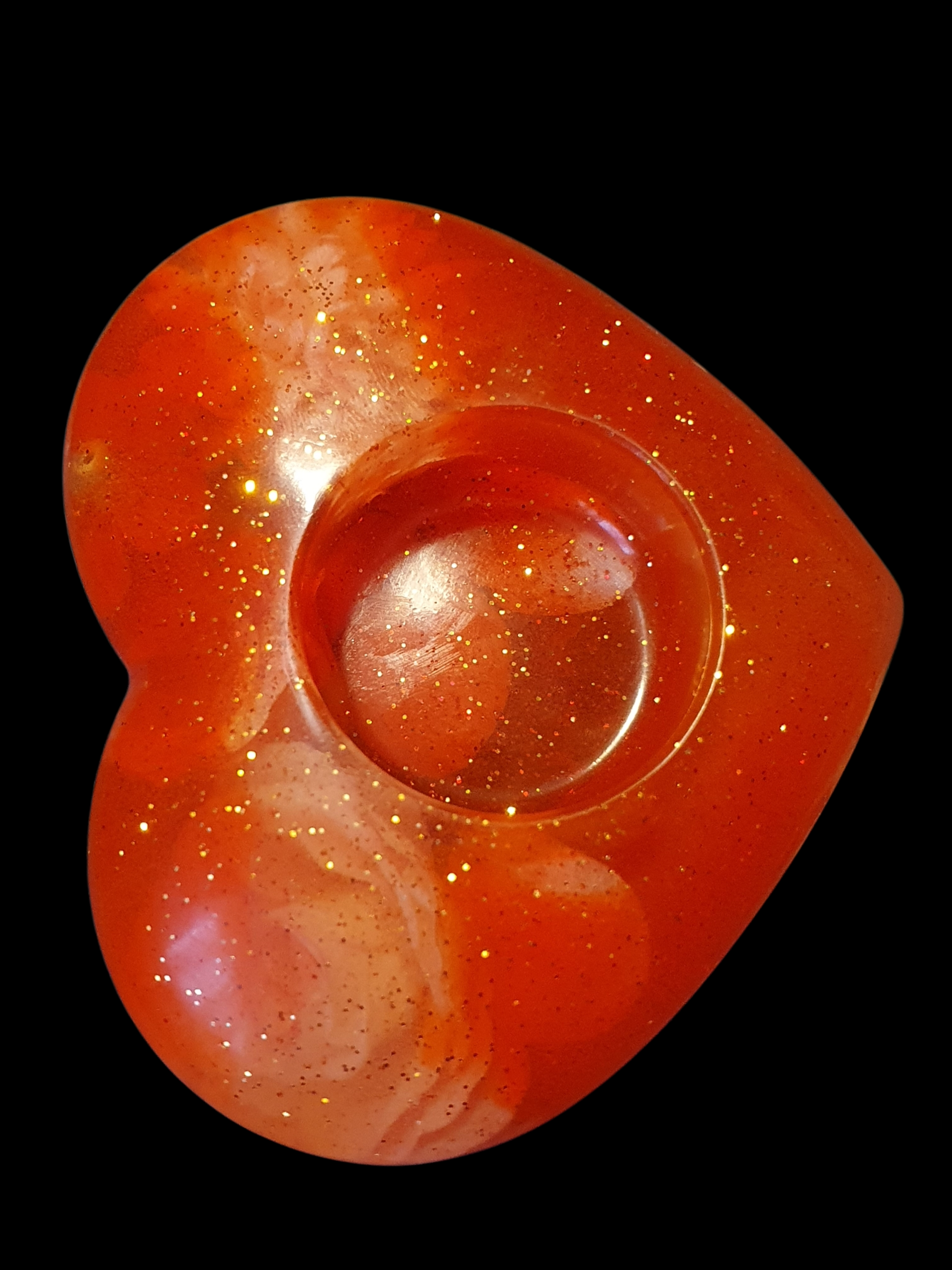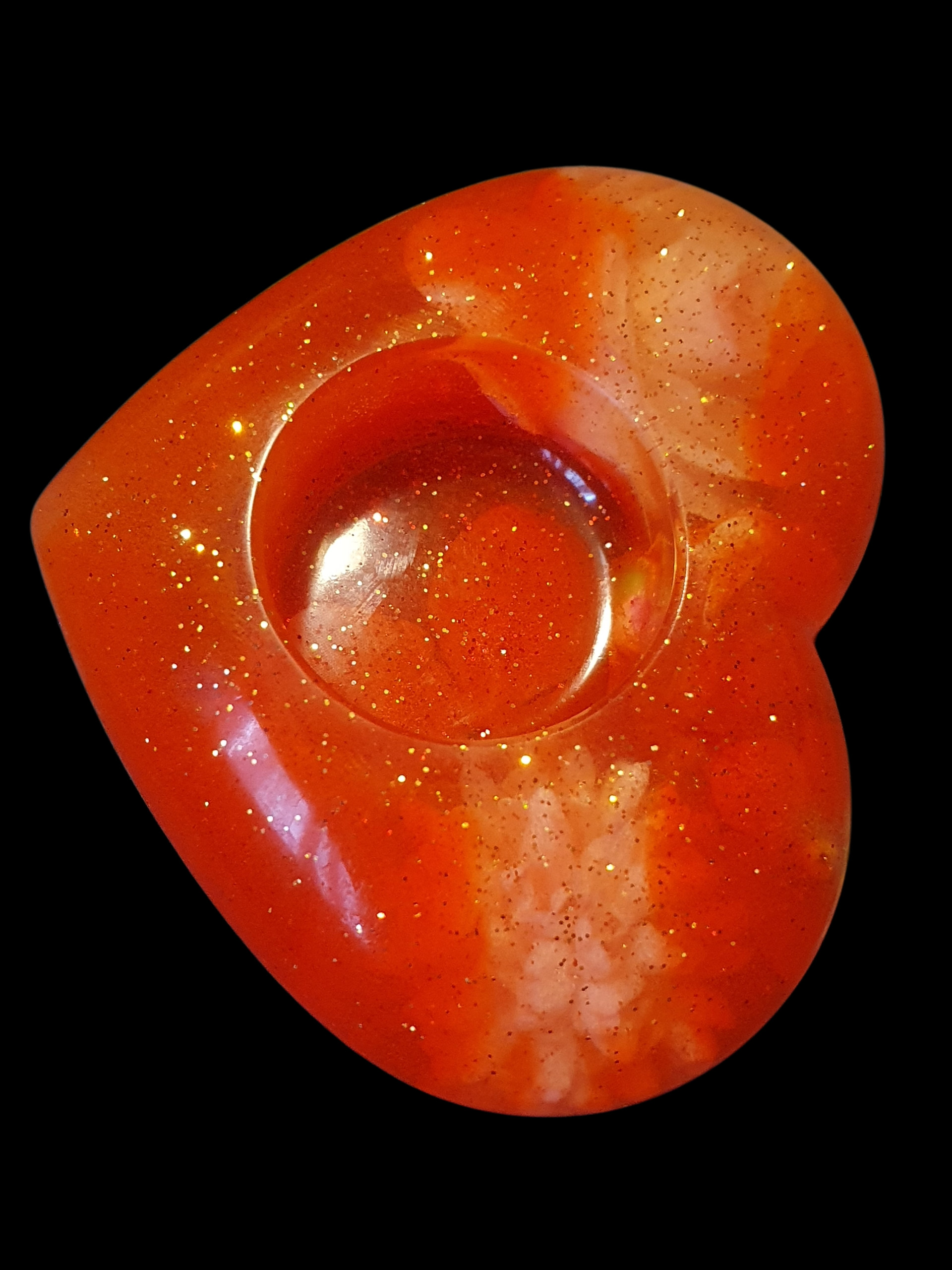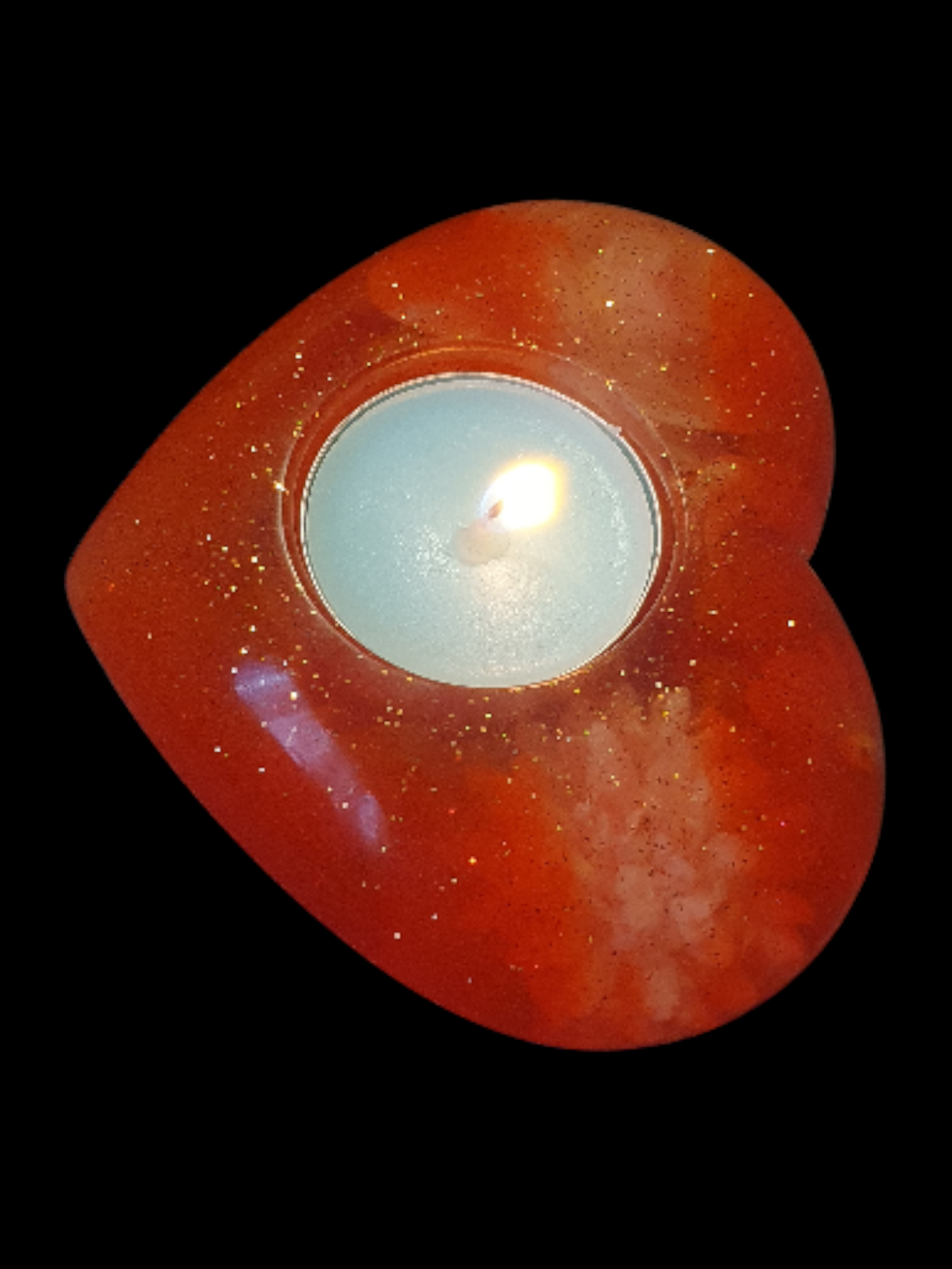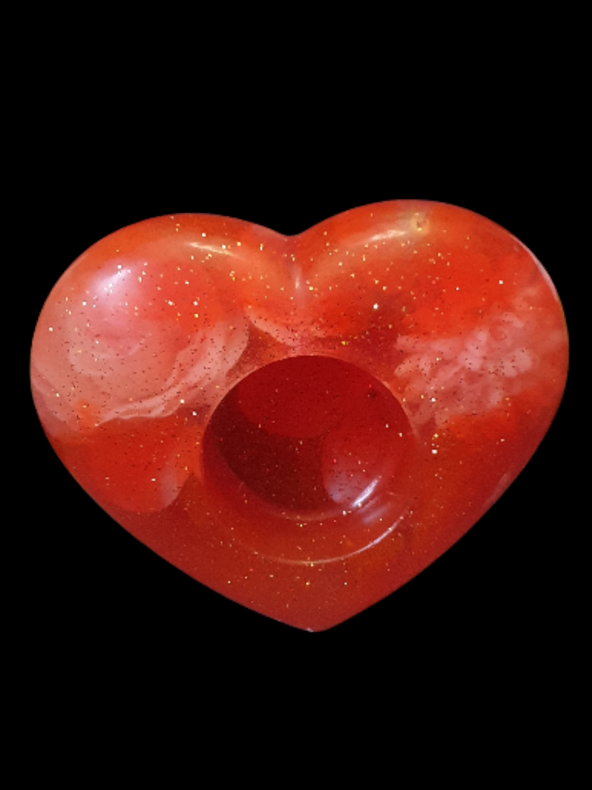 Un cœur ardent traversé de reflets incandescents, comme une émotion qui brûle sans se consumer.