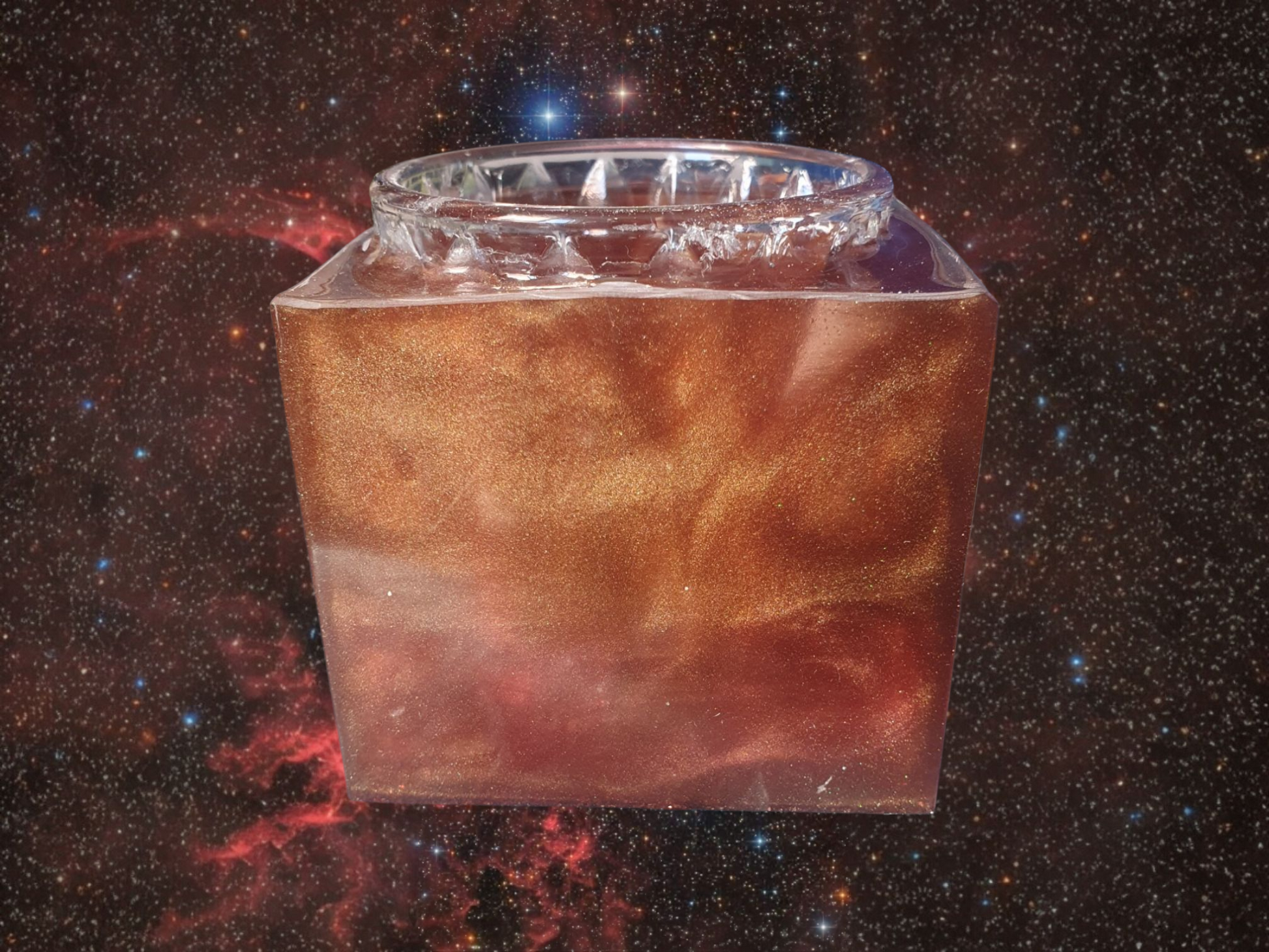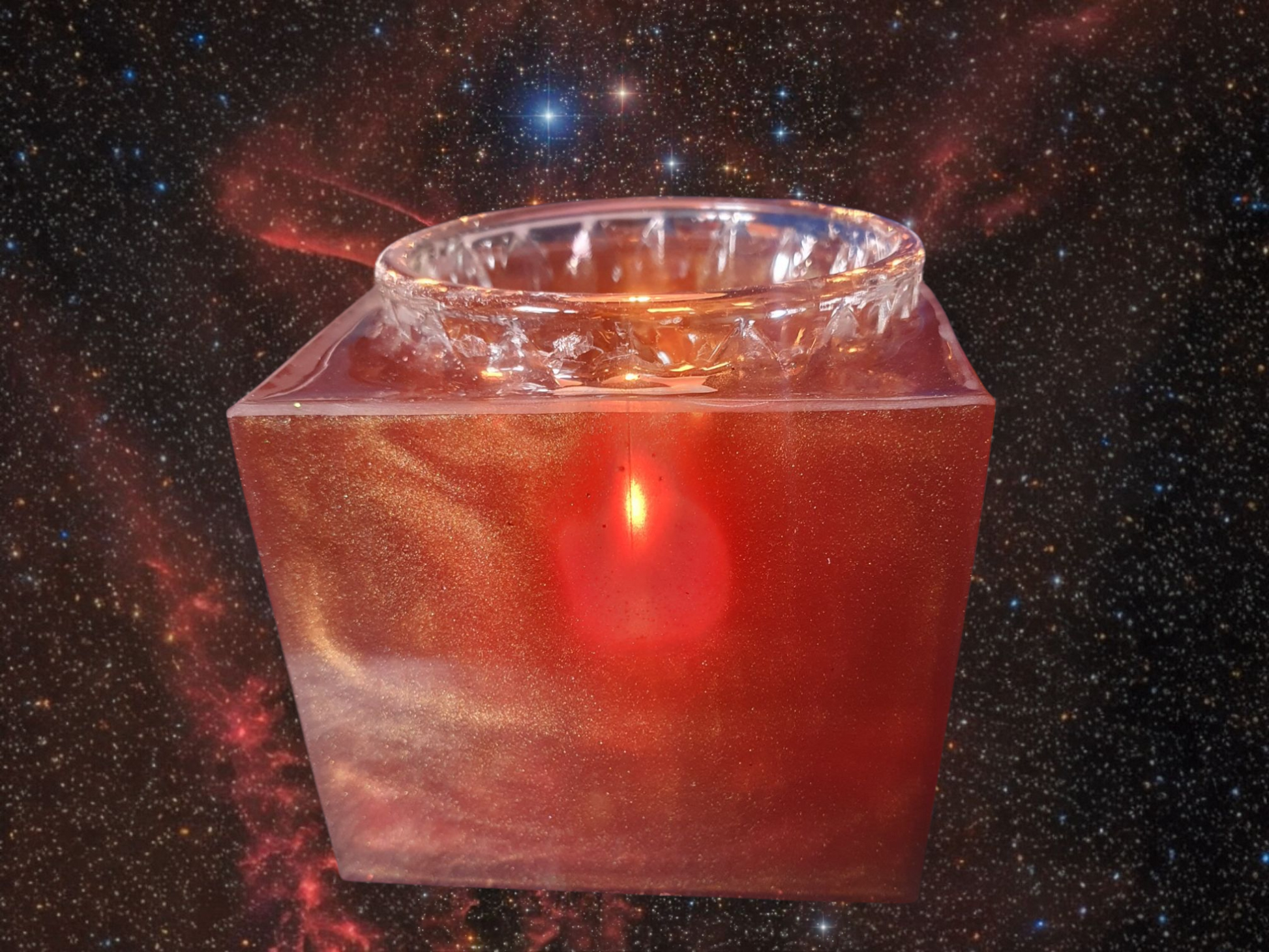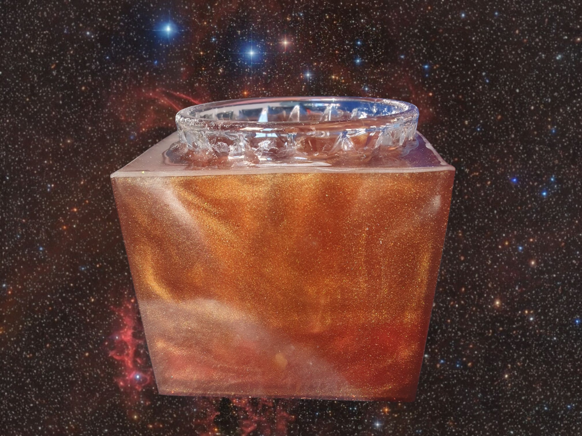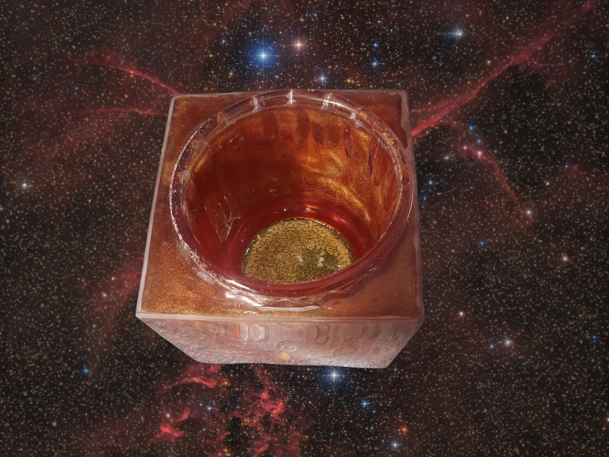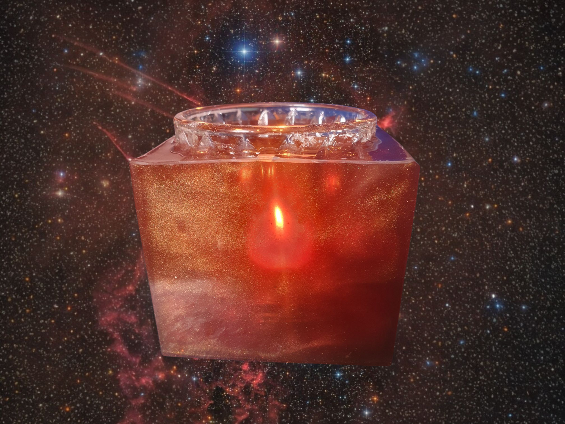 Ce photophore aux reflets cuivrés incarne une braise céleste, un feu🔥 sacré contenu.