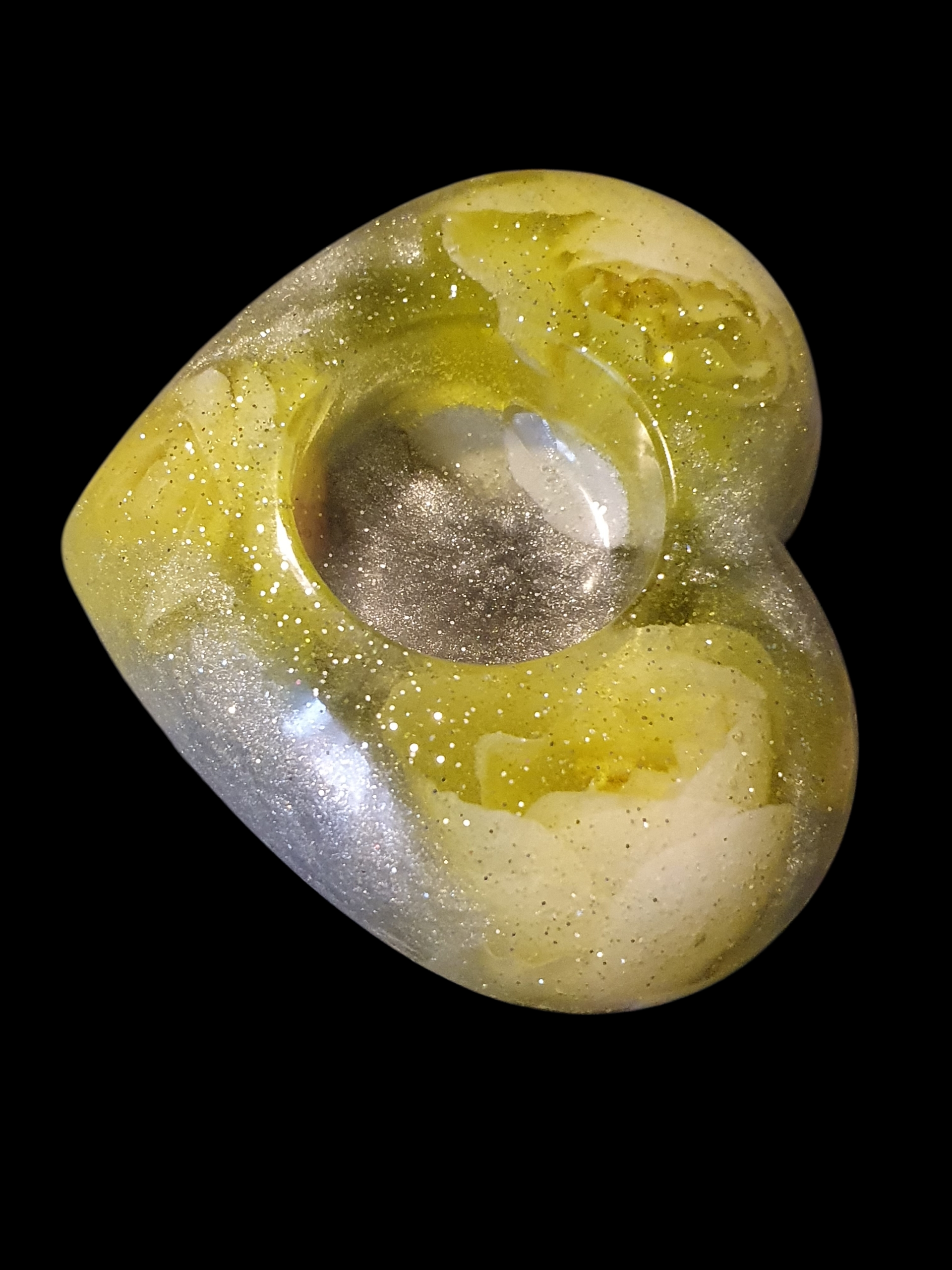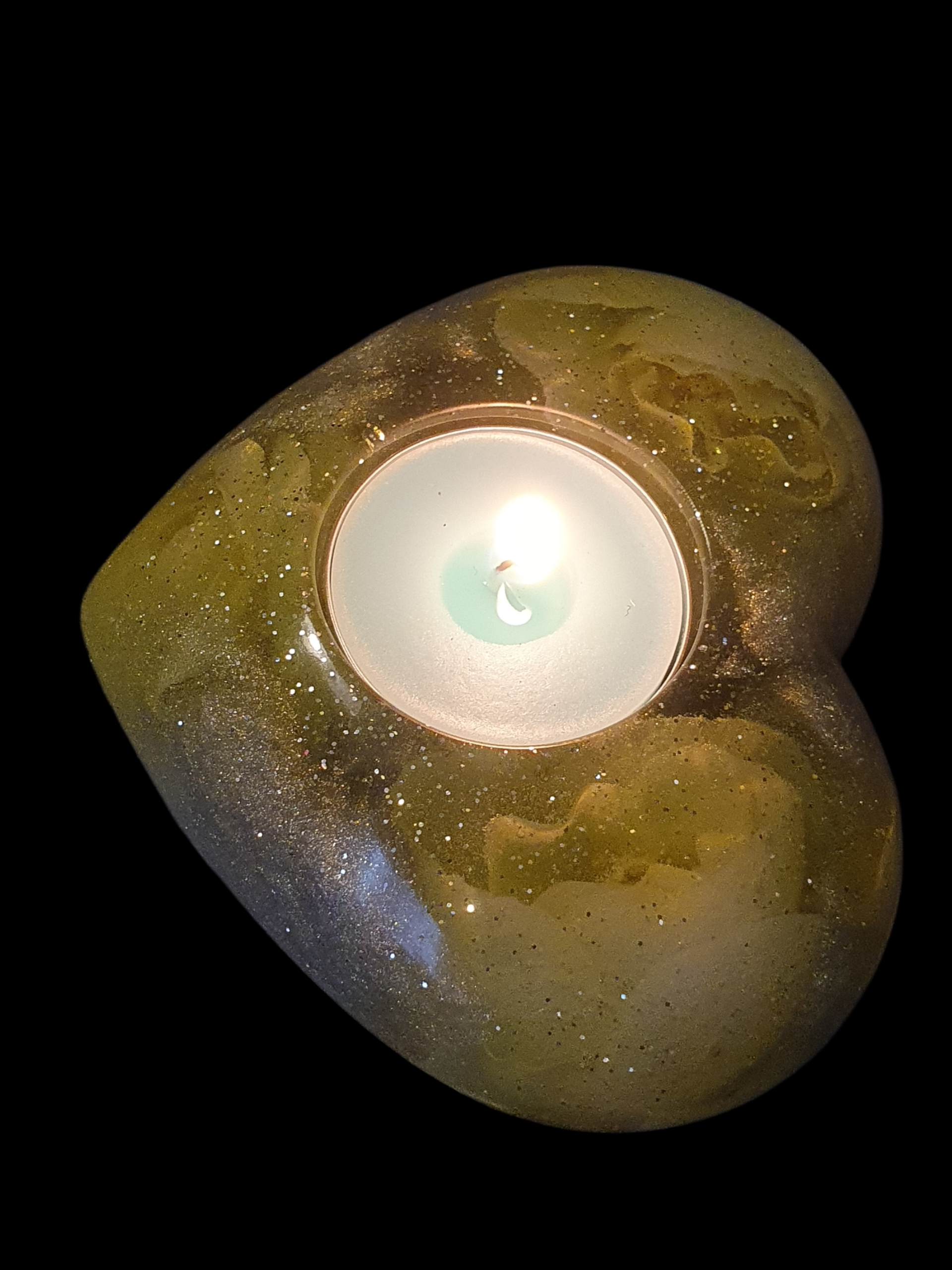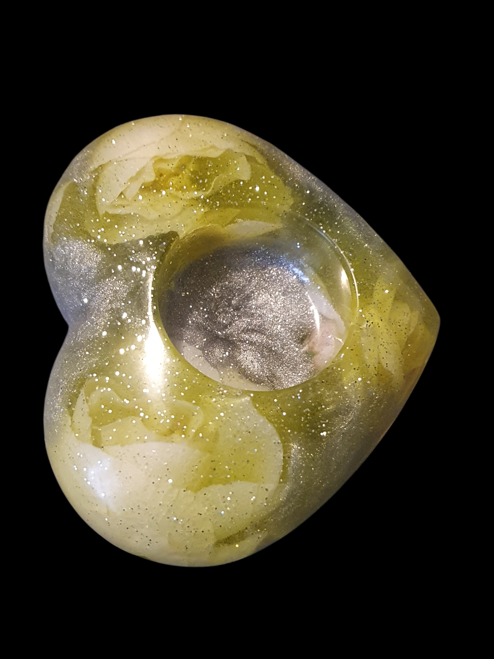 Une matière dorée aux reflets nacrés, comme une graine ancienne préservant la mémoire du vivant.