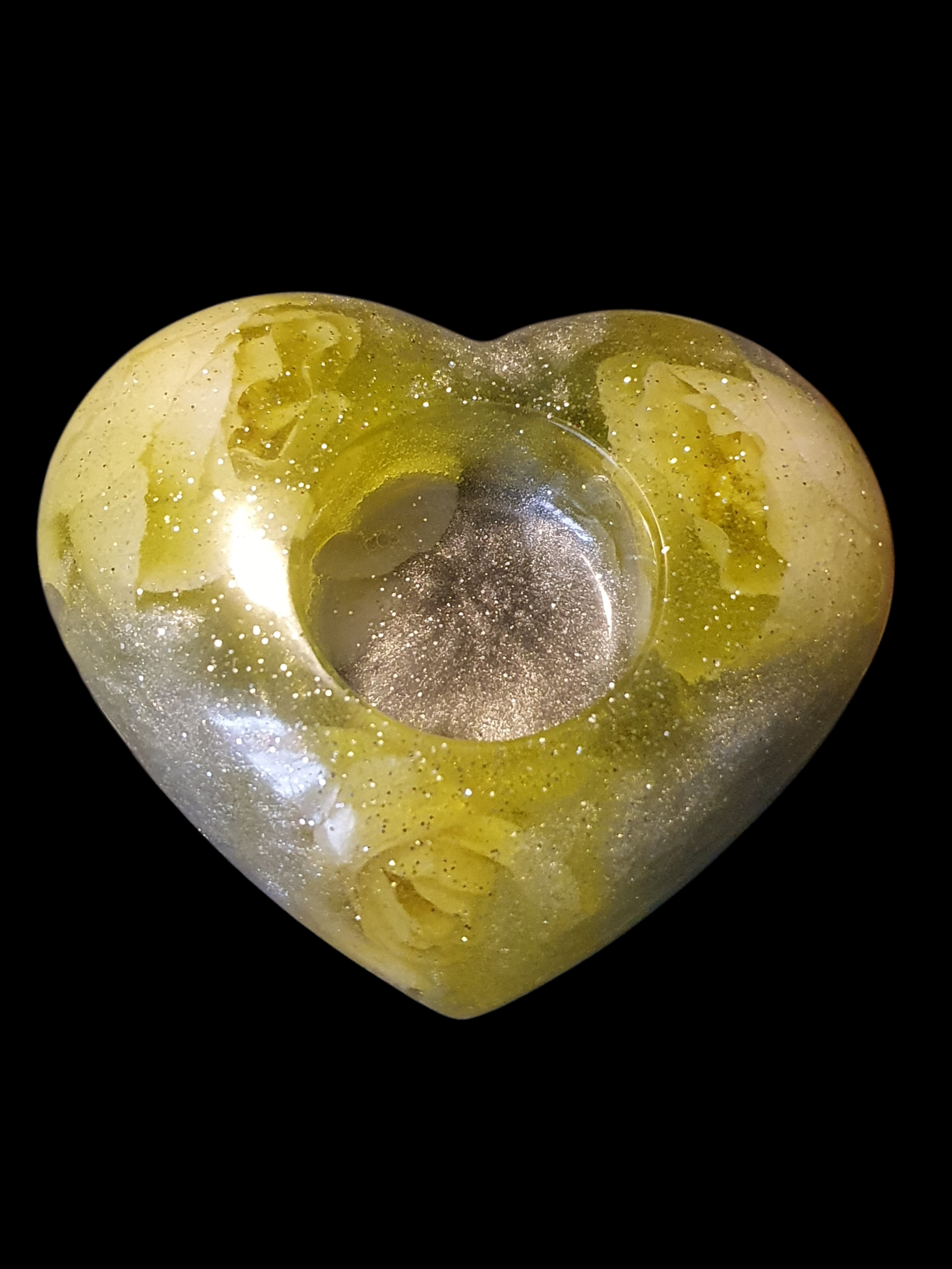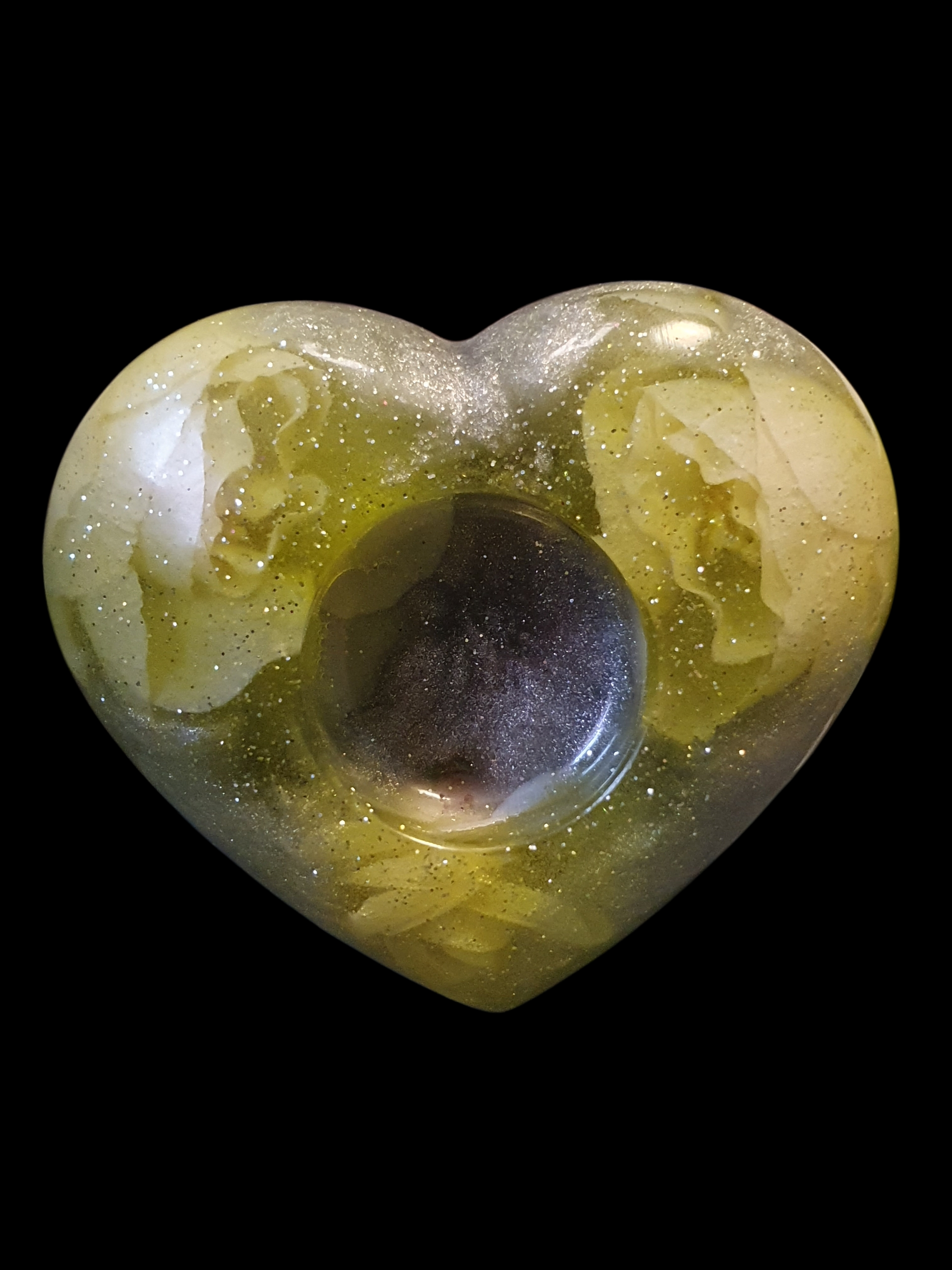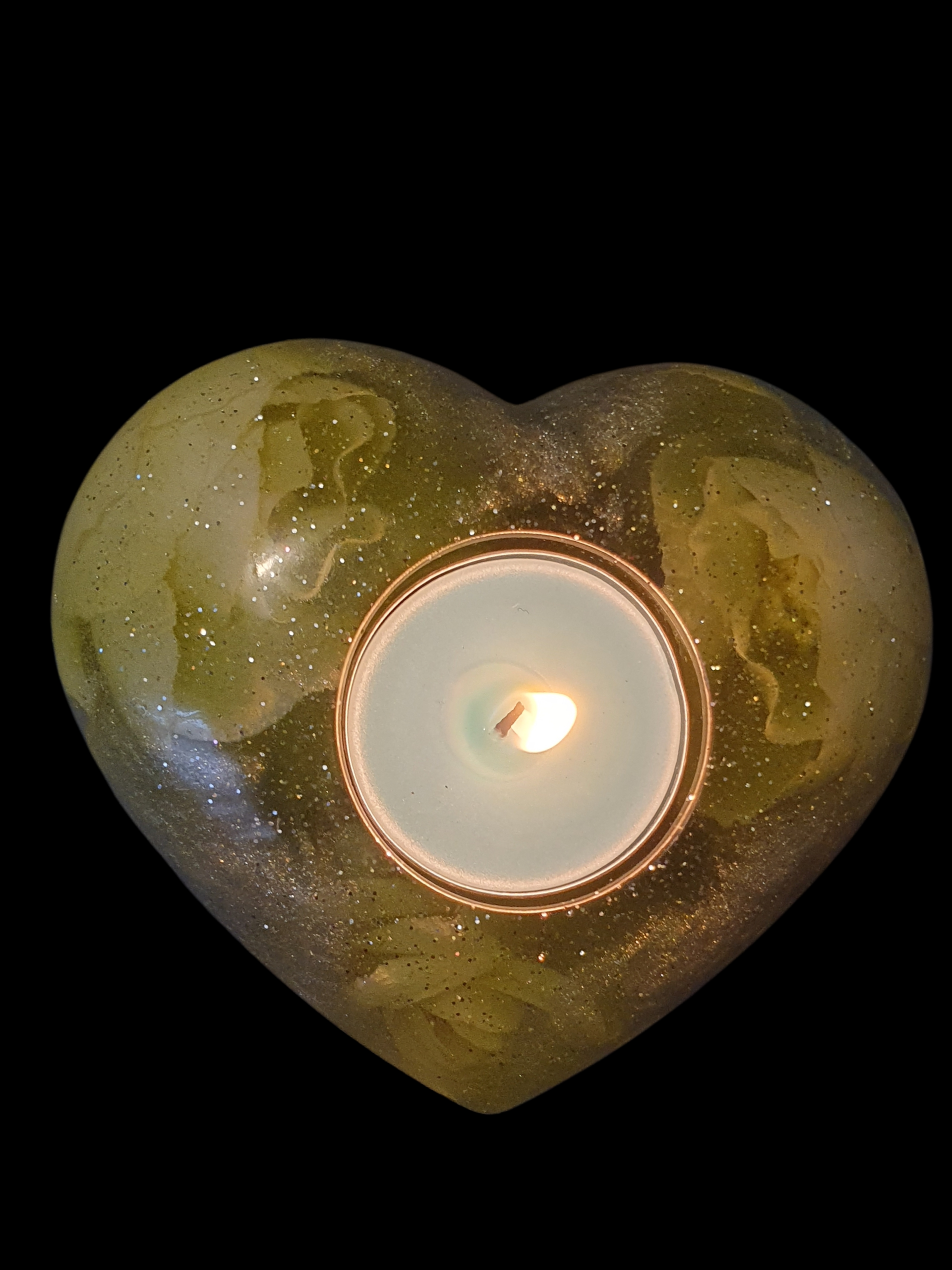 Une matière dorée aux reflets nacrés, comme une graine ancienne préservant la mémoire du vivant.