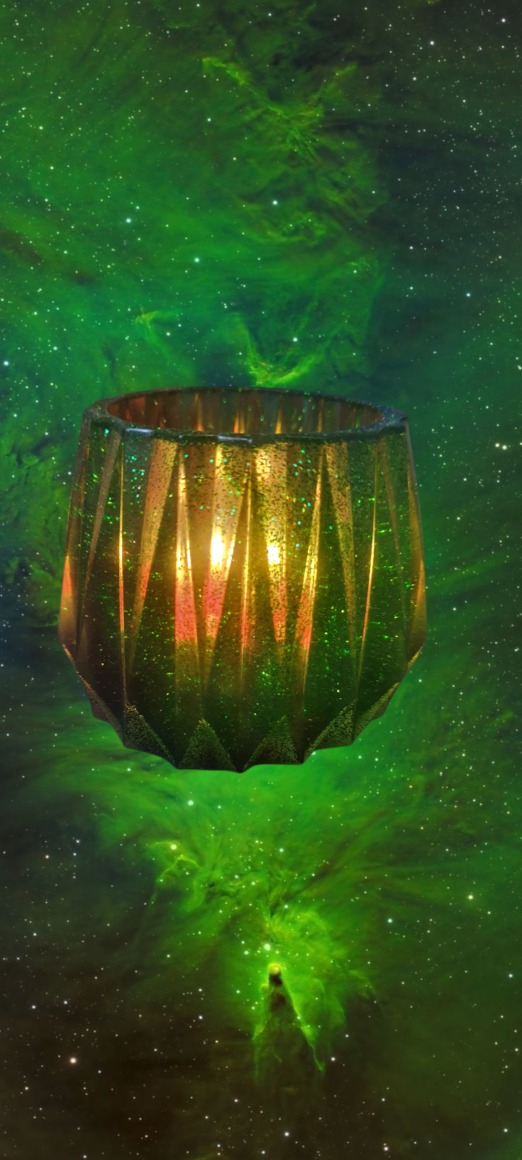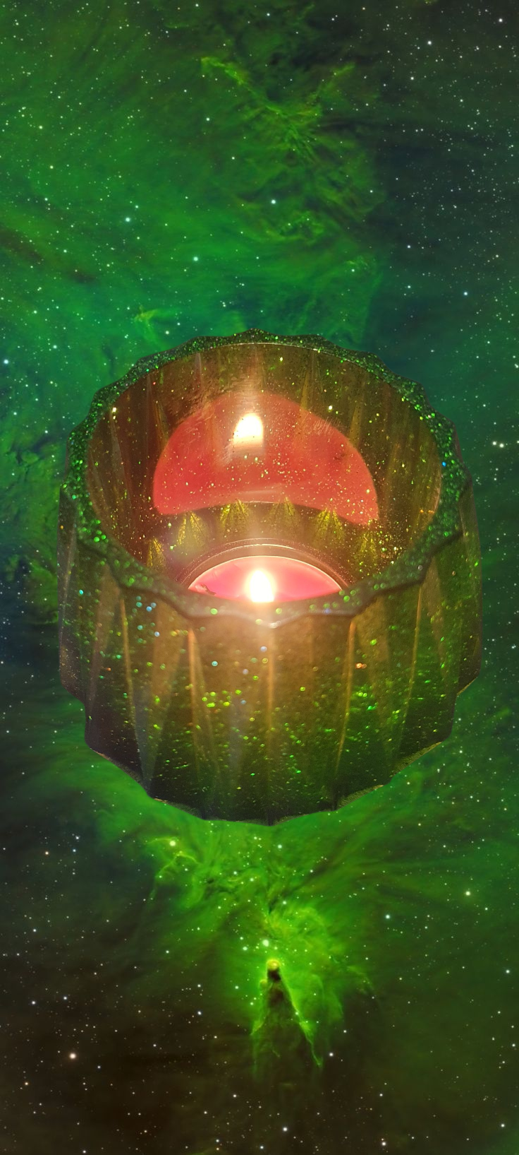 Une onde verte pulse entre matière et lumière, écho d'une étoile renaissante.