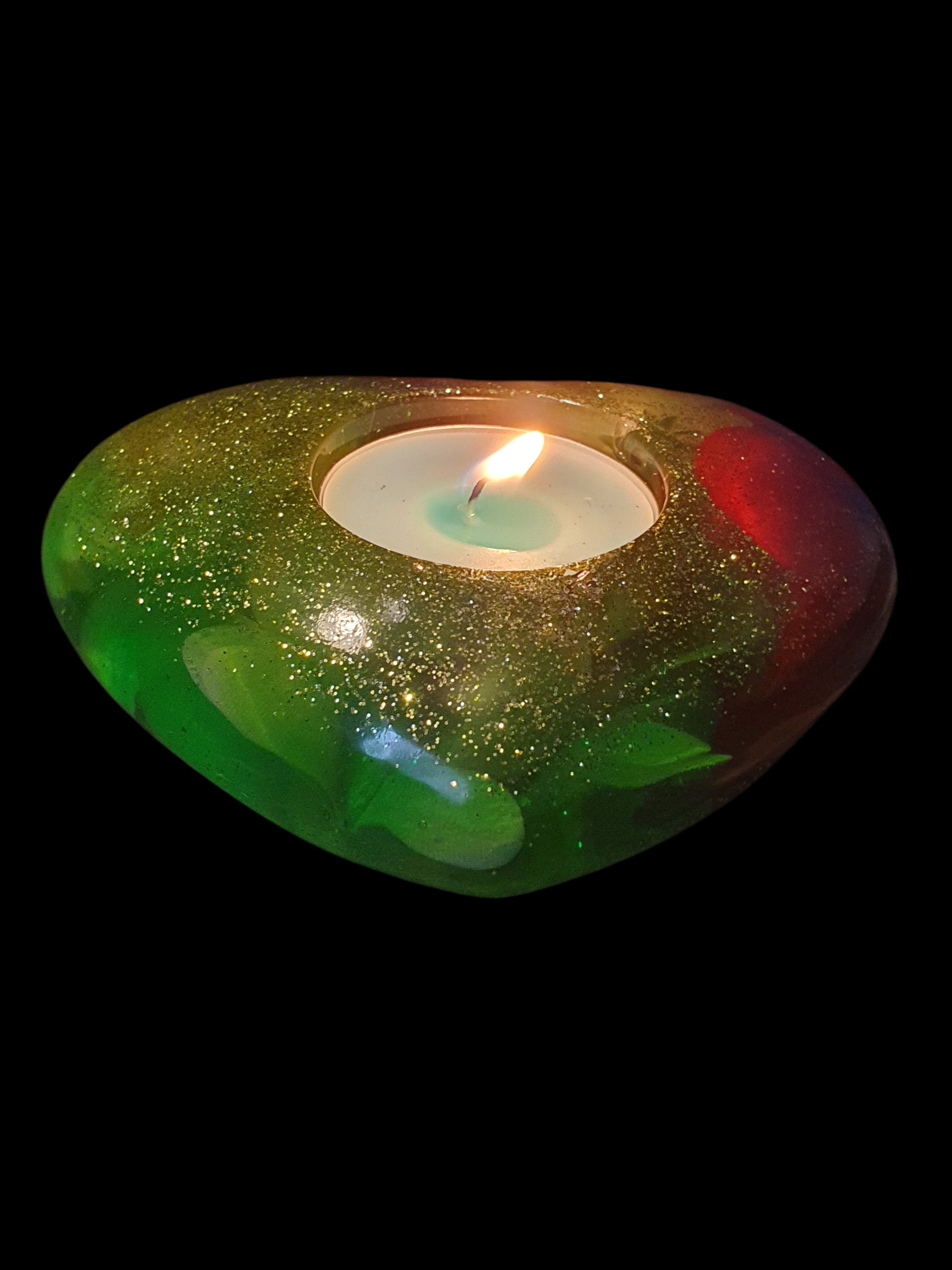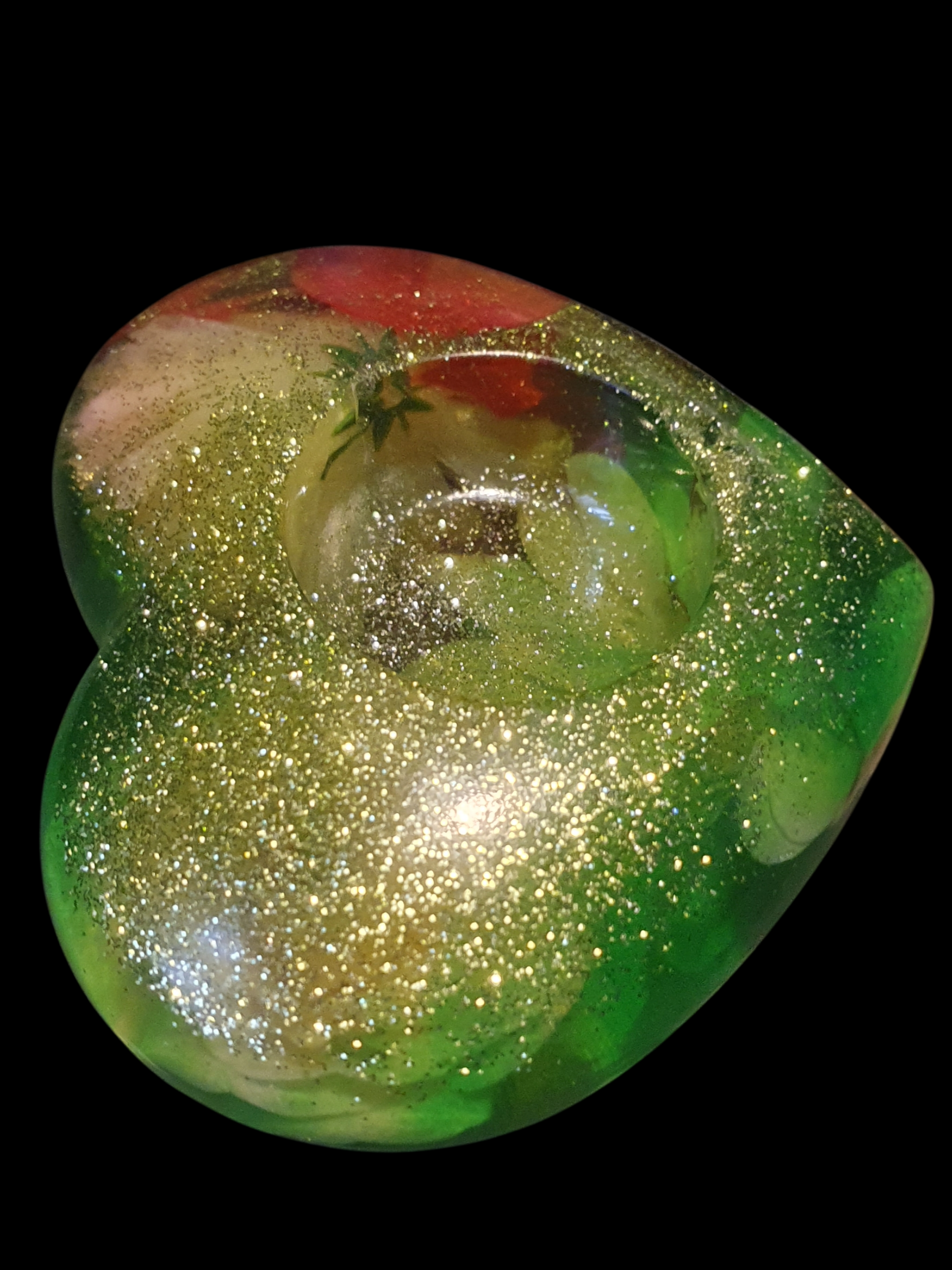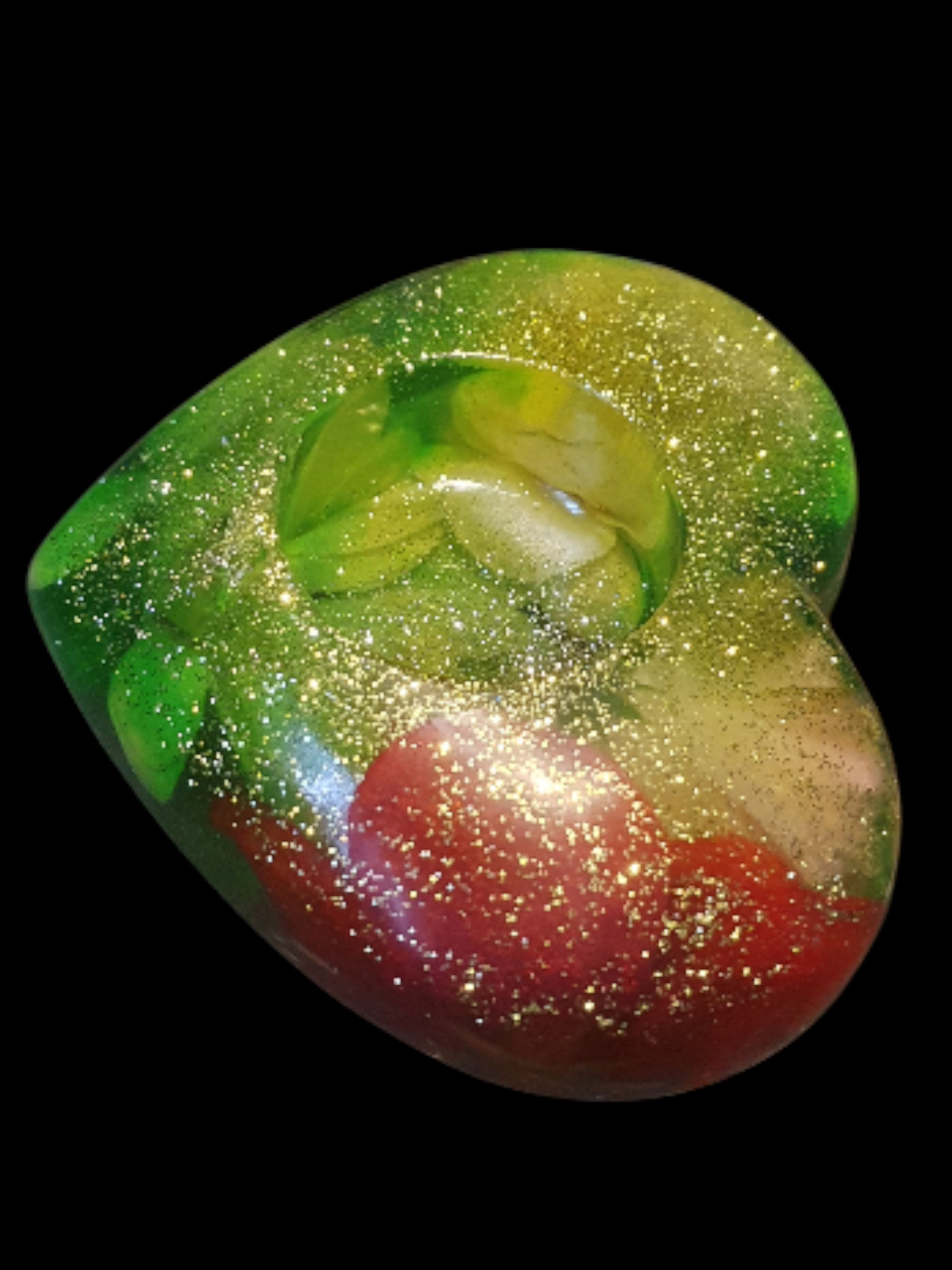 Une lumière verte et dorée circule comme une sève vivante, nourissant la matière de reflets vibrants.